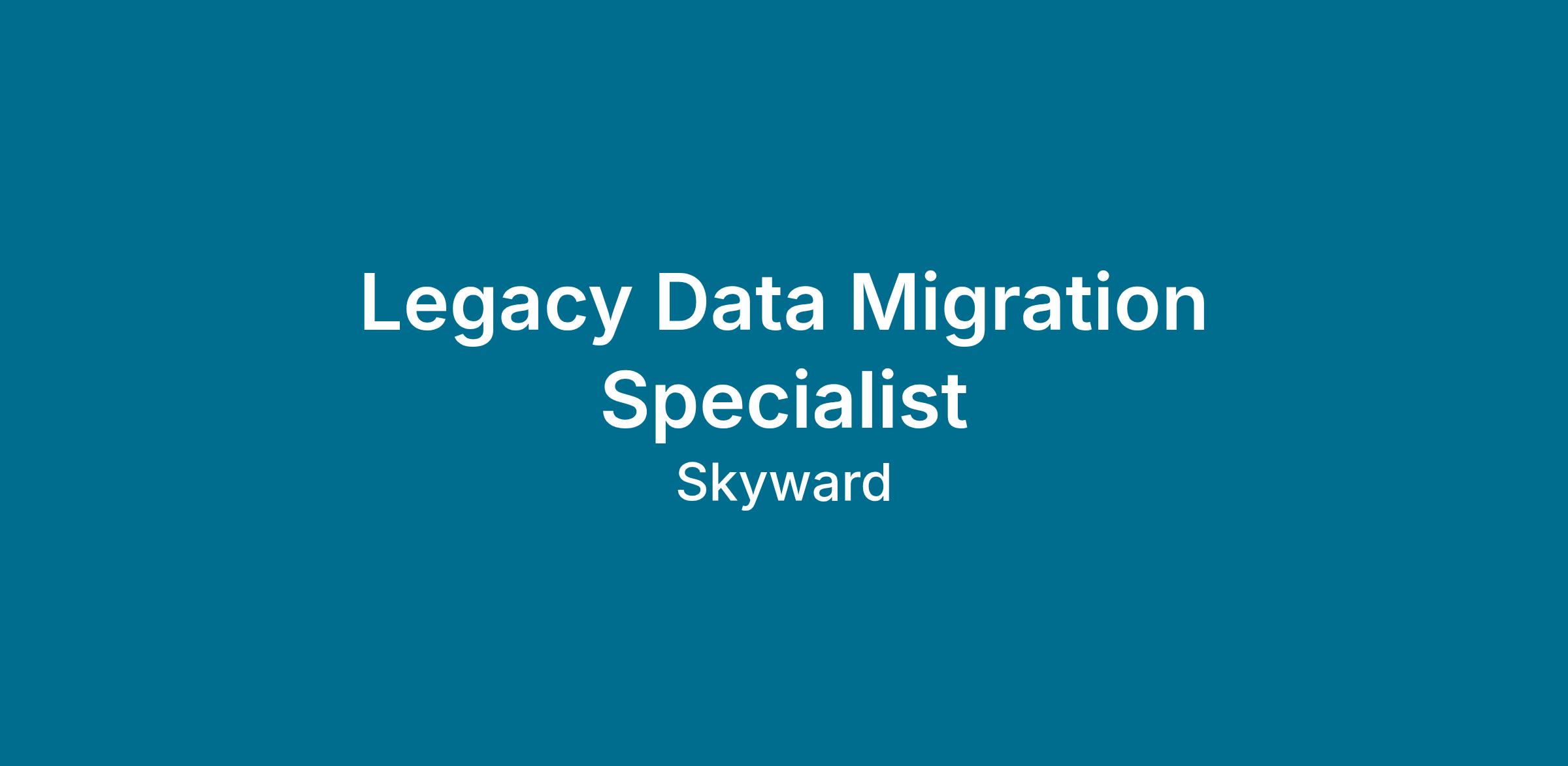 Skyward is seeking an organized individual to join the Software Engineering department as a Legacy Data Migration Specialist. This role is central to the department’s oversight of customers migrating from one Skyward system to another. The Legacy Data Migration Specialist will work closely with the department’s leadership, the Qmlativ Migrations department, the Technology Solutions Team, and our business partners. Click here to view a full job description.