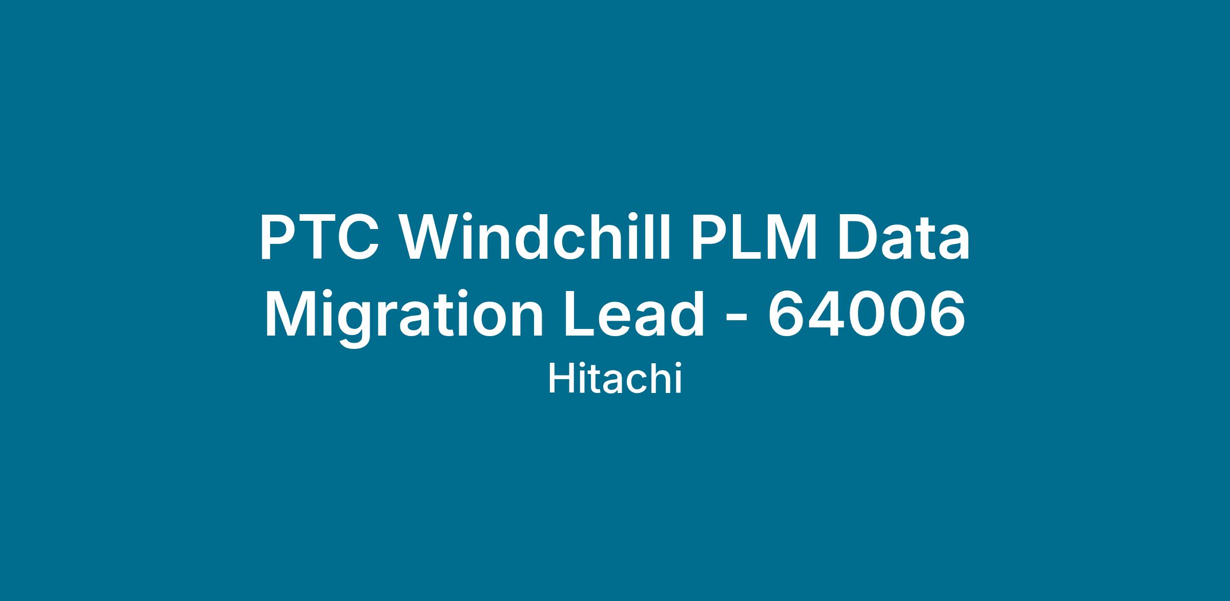 PTC Windchill PLM Data Migration Lead - 64006