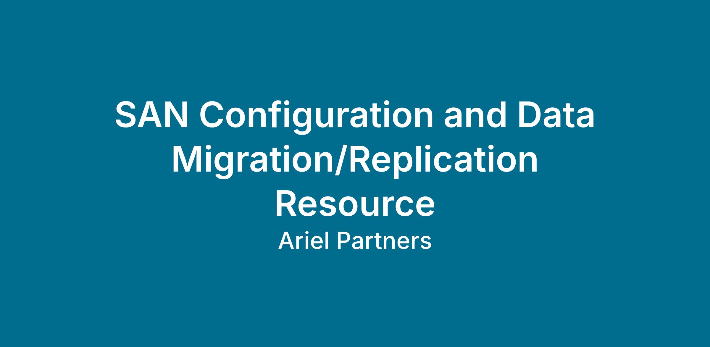 SAN Configuration and Data Migration/Replication Resource