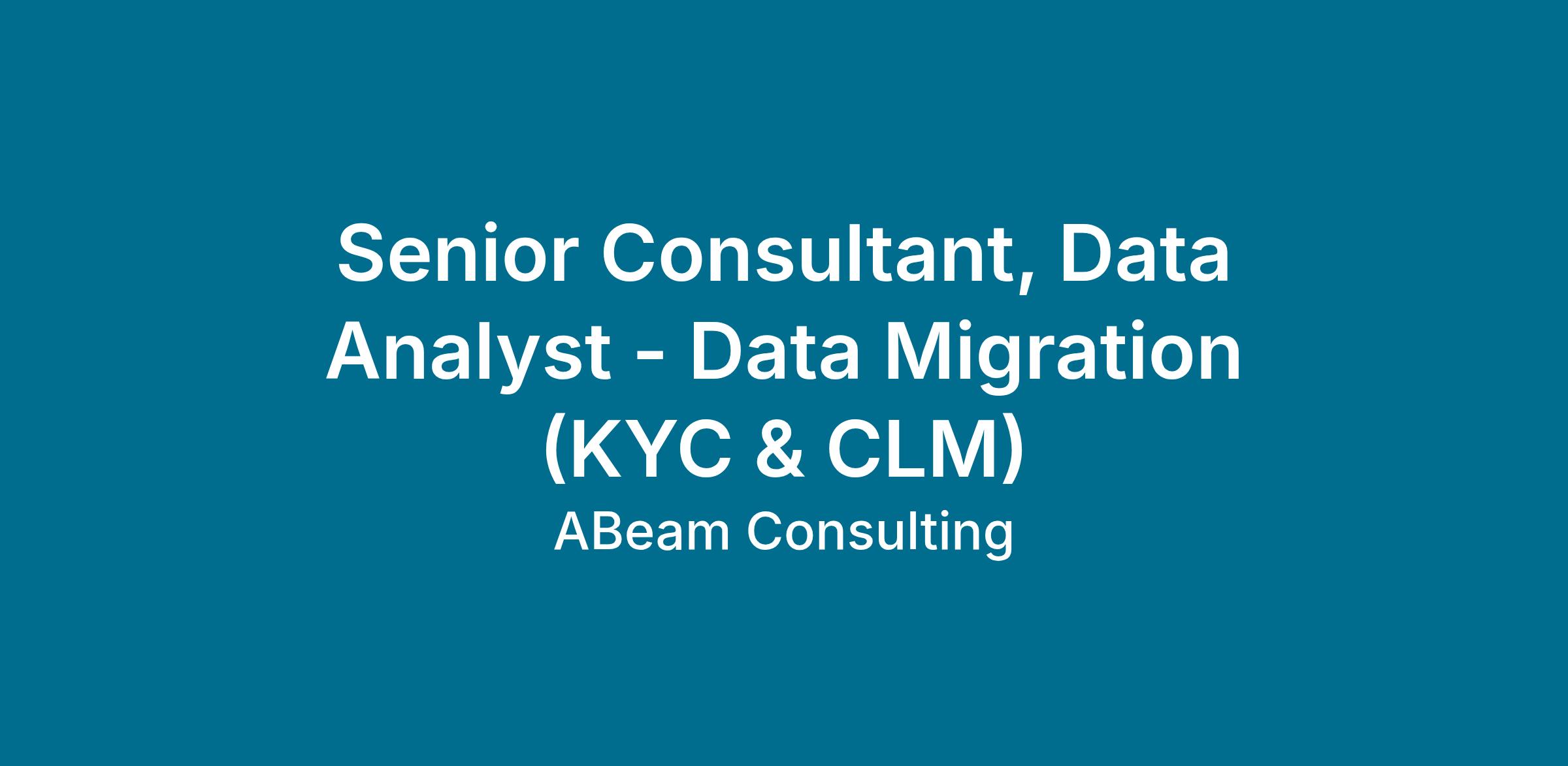 - Familiarity with data migration methodologies and KYC / CLM regulatory requirements.