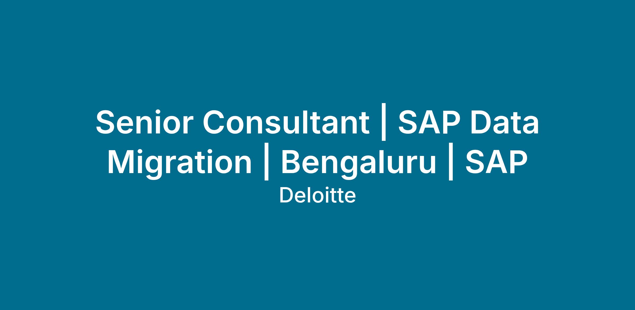 Senior Consultant | SAP Data Migration| Bangalore | SAP